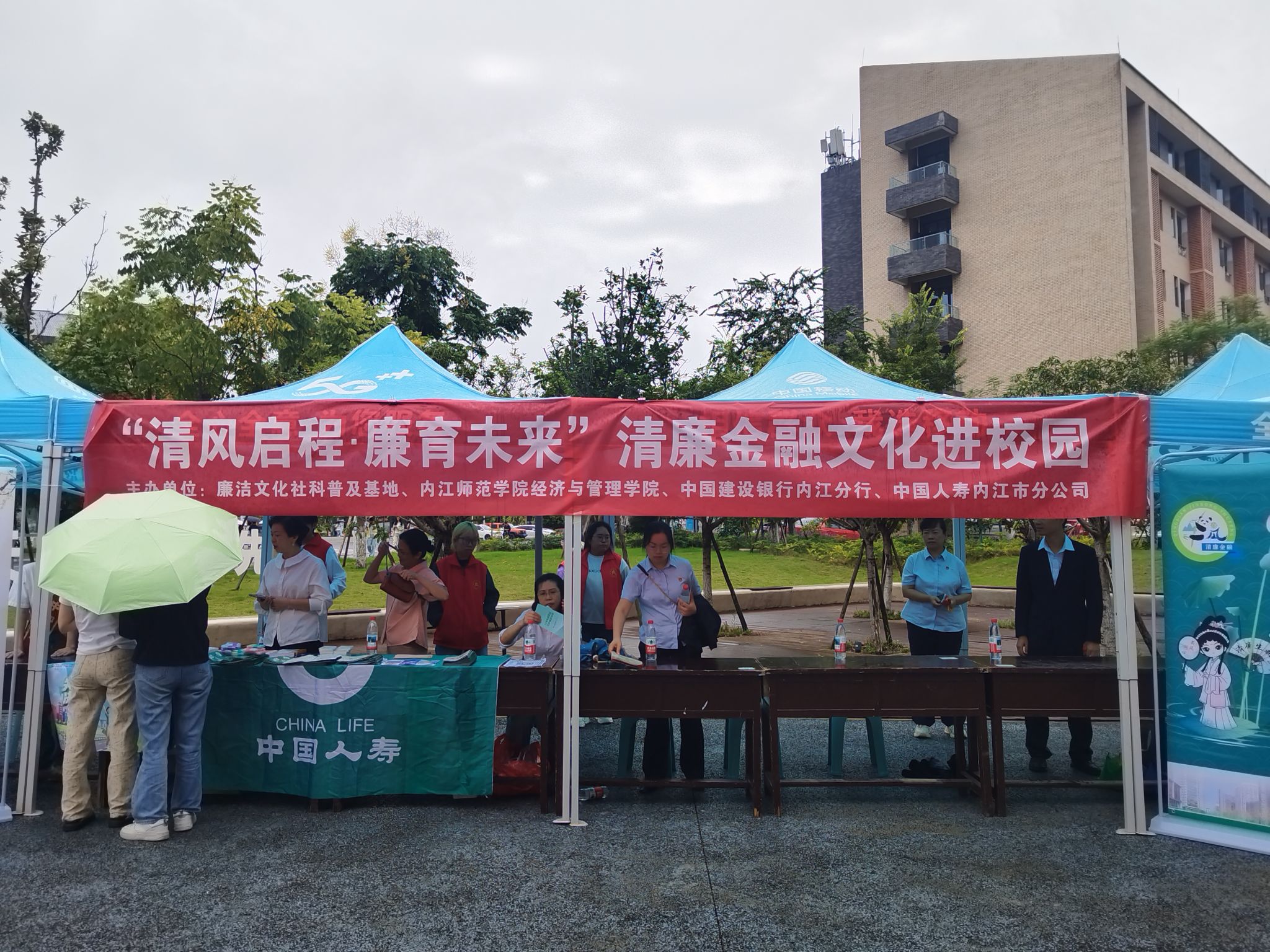 为深入贯彻落实新时代廉洁文化建设要求,切实提升青年学子金融法治素养和廉洁从业意识,为社会长远发展涵养清风正气,储备德才兼备人才。9月18日,基地携手内江师范学院经济与管理学院、中国人寿内江市分公司、中国建设银行内江分行,在内江师范学院共同开展了“清风启程 廉育未来”清廉金融文化进校园廉洁文化宣传活动。